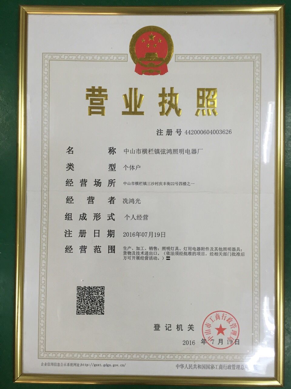 中国,广东省,中山市,广东省中山市横栏镇三沙村庆丰街22号四楼