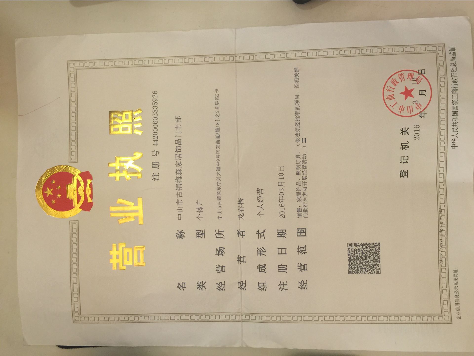 中国,广东省中山市古镇冈东商厦A栋18卡