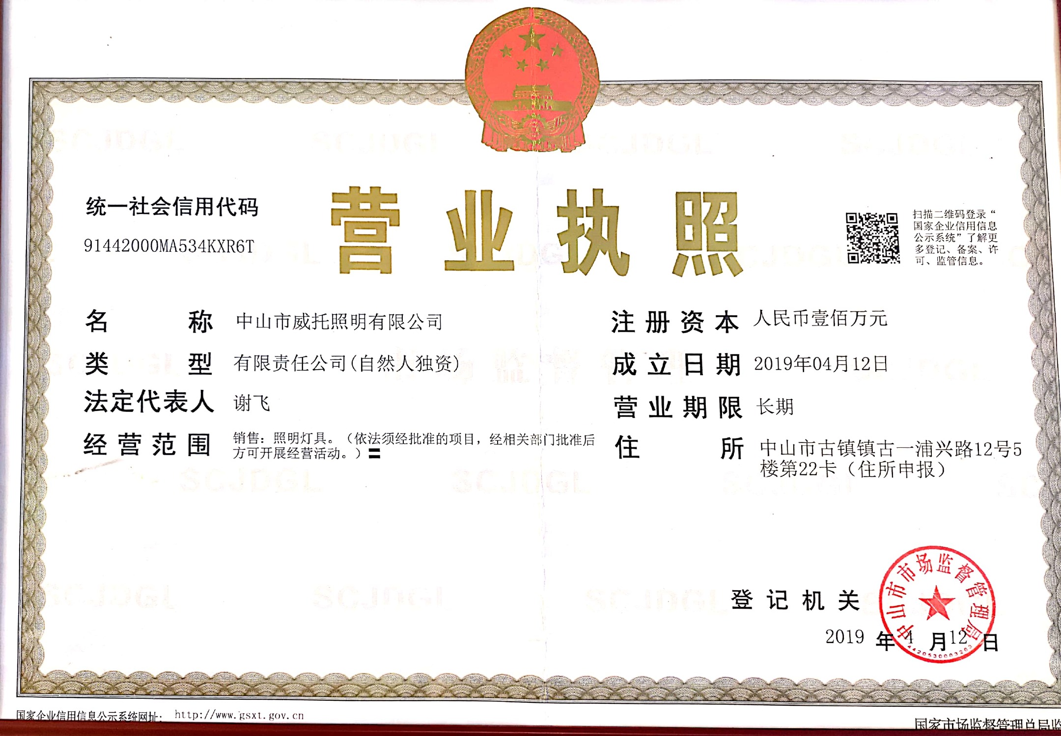 中国,广东省,中山市,广东省中山市古镇曹兴西路陆家灯饰城19号一楼1-02卡,二楼2-05卡