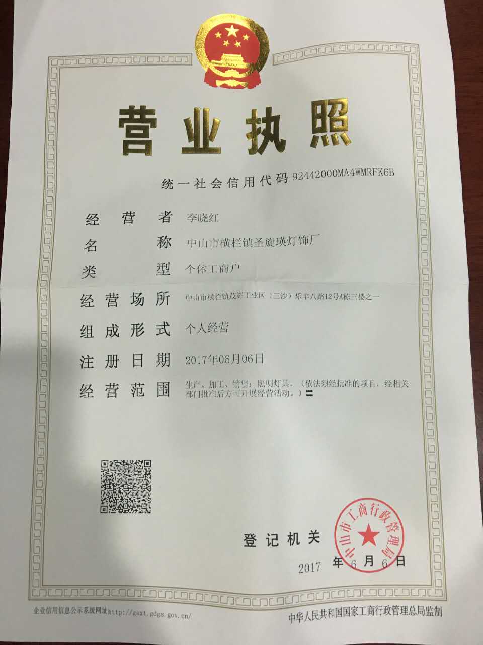 中国,广东省,中山市横栏镇茂辉工业区乐丰八路12号A栋三楼