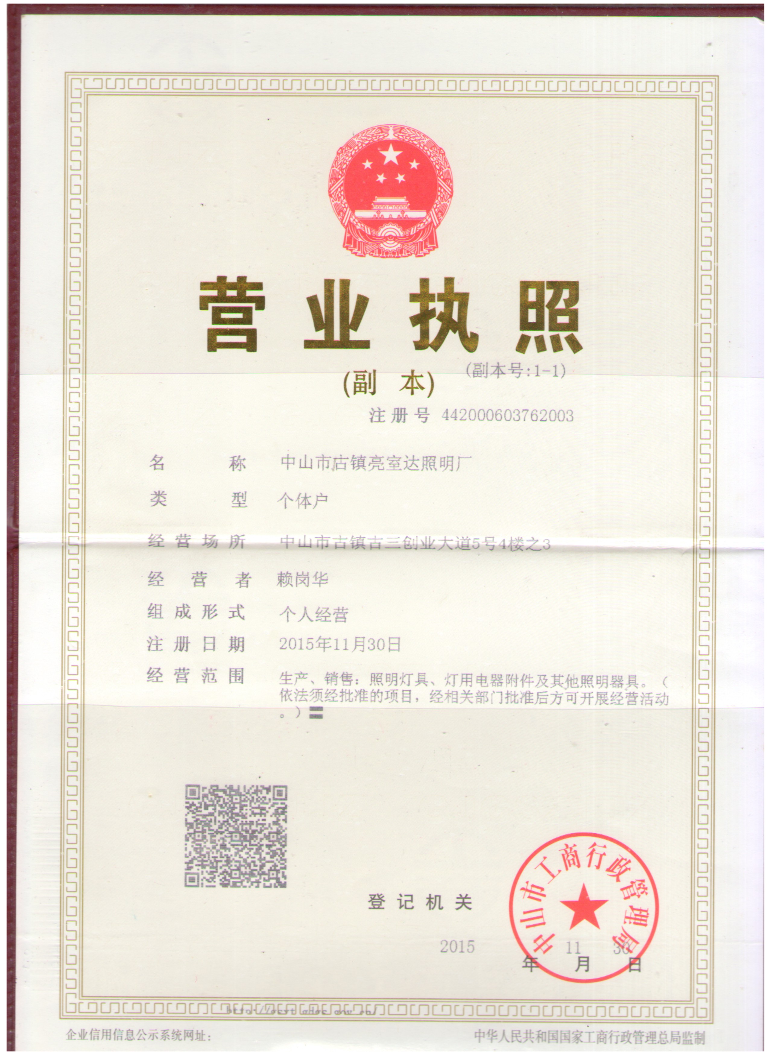中山市古镇亮室达照明厂