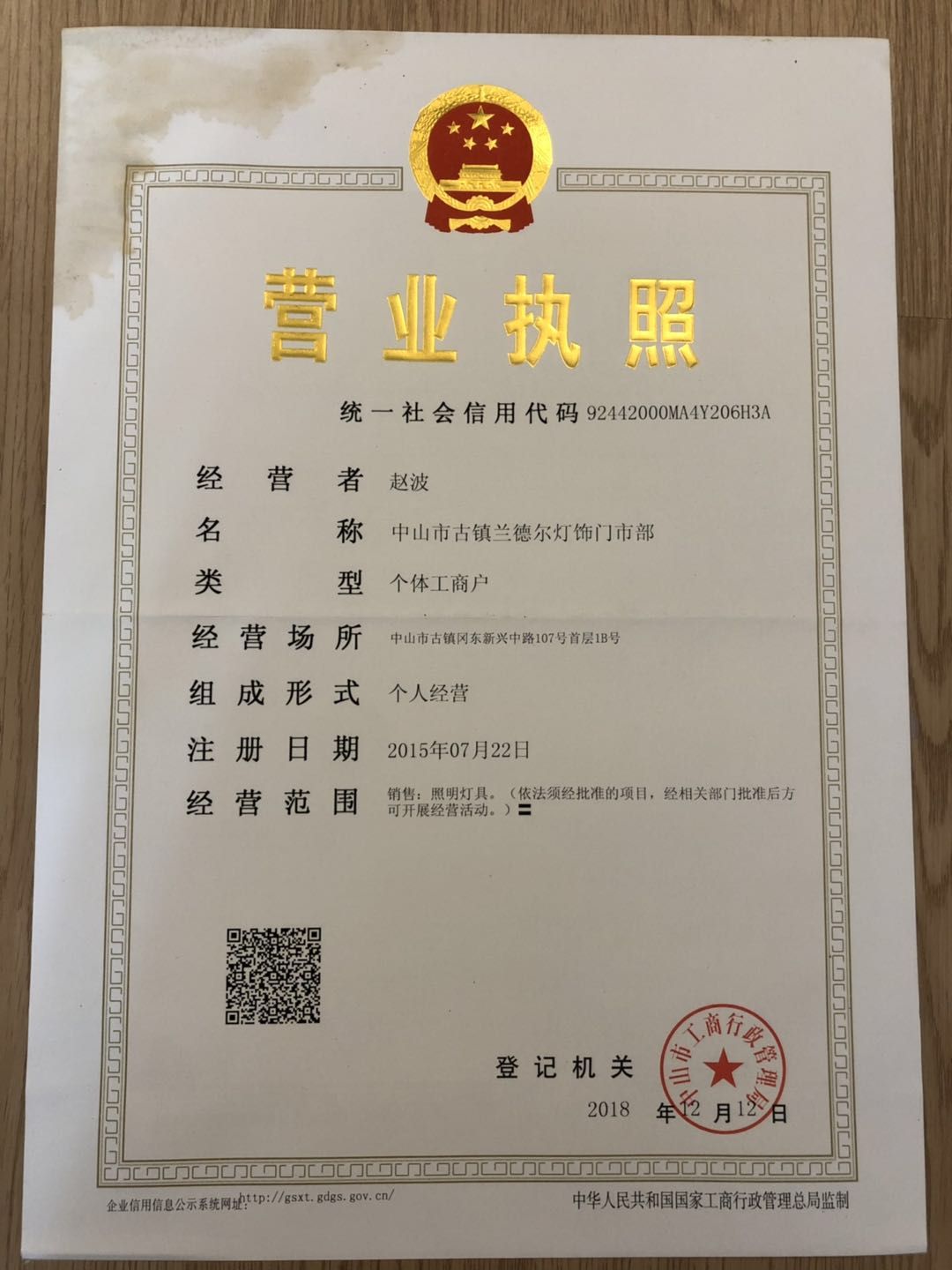 广东省,中山市,中山古镇冈东新兴中路107号首层1B号