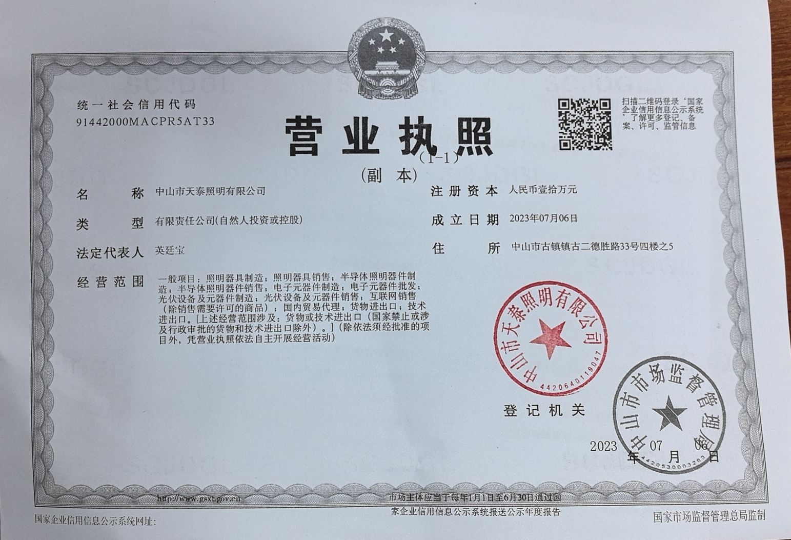 中国,广东省,中山市,广东省中山市古一灯配城6栋13号