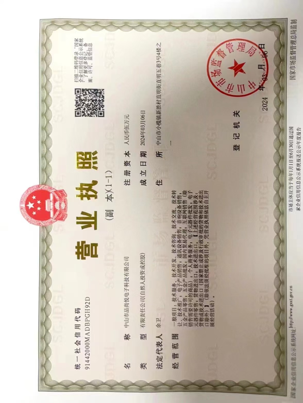 中国,广东省,中山市,中山市小榄镇新胜村直明街直明五巷3号4楼之一