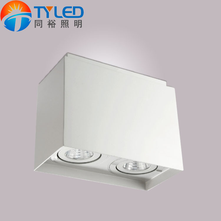 展品名称:双头方形明装办公室会所酒店工程双头方形明装COB射灯吸顶LED筒灯