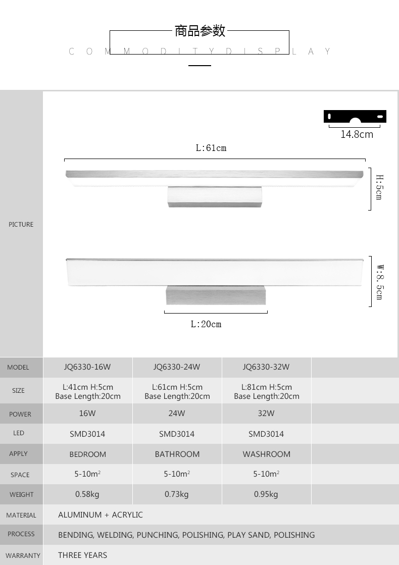 详细说明:6330-16W-41cm 6330-24W-61cm 6330-32W-81cm