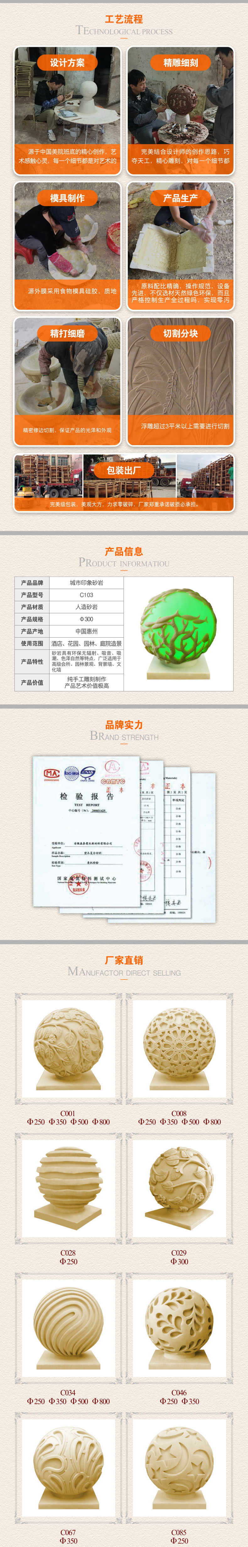砂岩欧式浮雕圆形球灯园林装饰灯