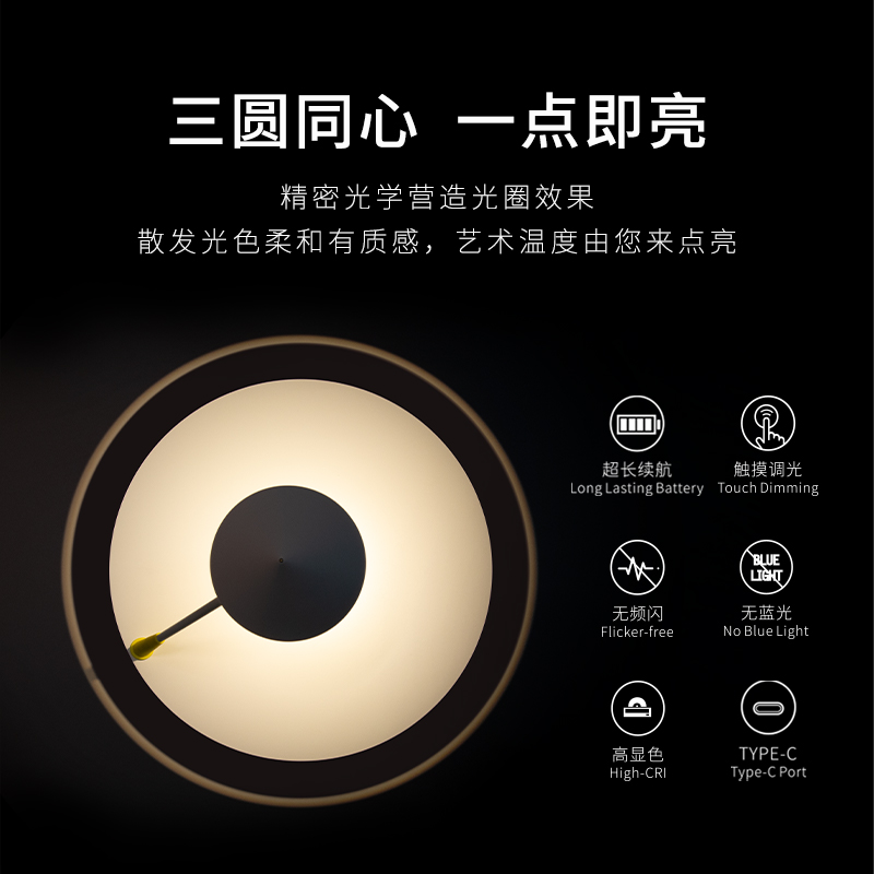 便携柔和光色光圈三圆同心款LED氛围灯